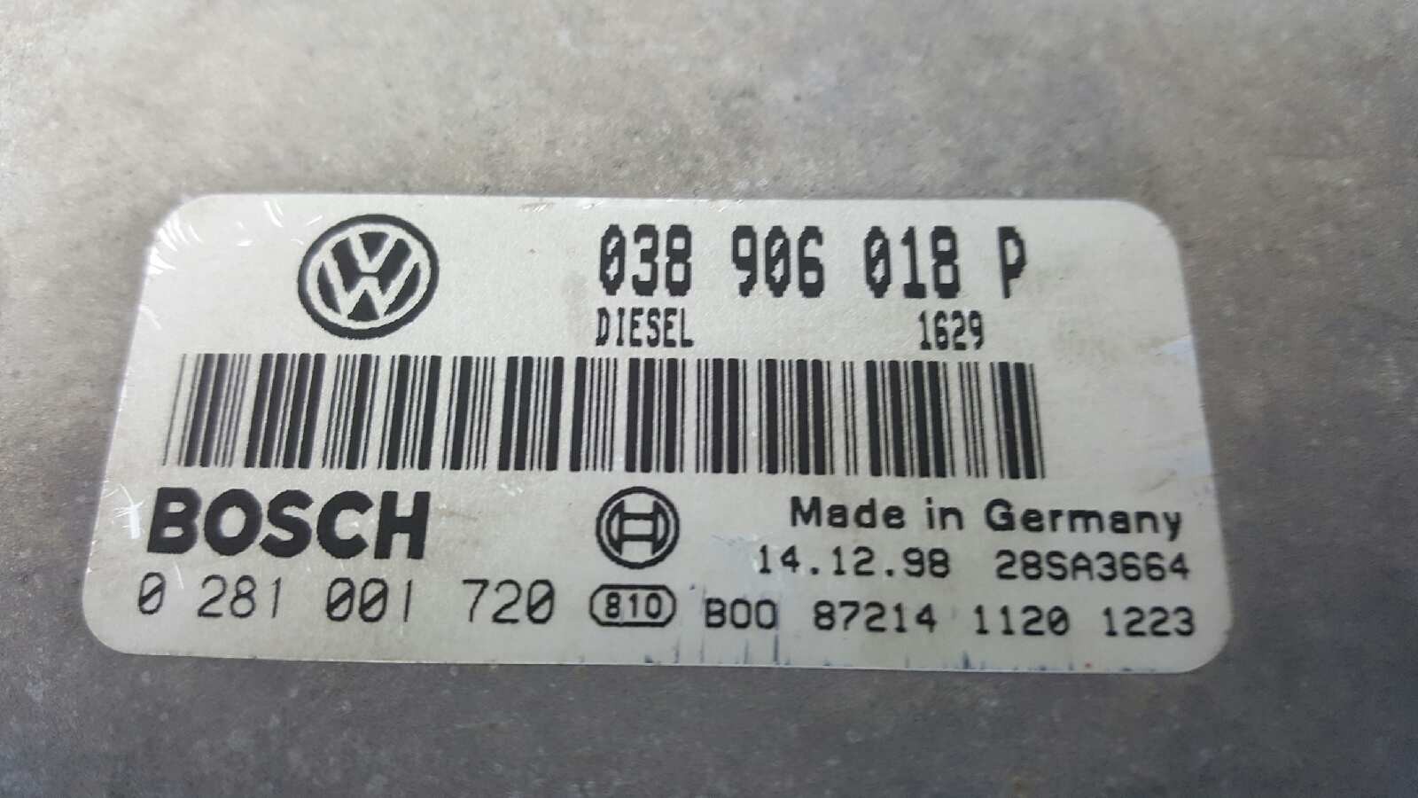 038906018P - CENTRALITA MOTOR UCE AUDI A4 BERLINA (B5) 1.9 TDI Quattro | 06.96 - 12.99